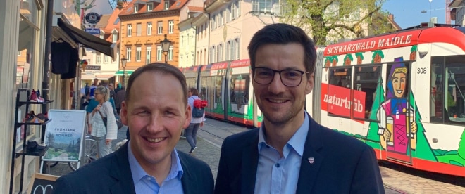 Marc Biadacz kennt den Oberbürgermeister der Stadt Freiburg, Martin Horn, noch aus seiner Zeit als Leiter des Büros des Oberbürgermeisters im Sindelfinger Rathaus. An der neuen Wirkungsstätte des Freiburger Oberbürgermeisters hat sich der direkt gewählte Bundestagsabgeordnete mit Martin Horn getroffen und über bezahlbaren Wohnraum diskutiert. „Der Schlüssel für mehr bezahlbaren Wohnraum ist in meinen Augen, mehr, schneller und günstiger zu bauen. Enteignungen, so wie sie die Grünen fordern, sind der falsche Weg,“ betonte Marc Biadacz.