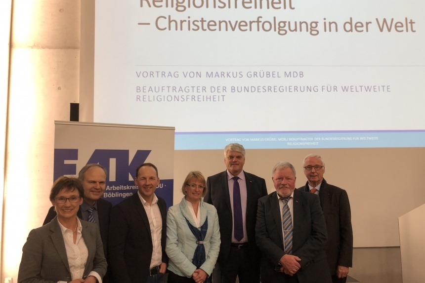 Anfang März war der Beauftragte der Bundesregierung für weltweite Religionsfreiheit, Markus Grübel MdB, auf Einladung von Marc Biadacz, dem Evangelischen Arbeitskreis der CDU im Kreis Böblingen und dem CDU-Stadtverband Rutesheim zu Gast in Rutesheim. Über 70 Besucherinnen und Besucher diskutierten bis in die späten Abendstunden. Mehr