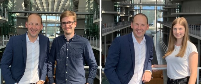 Der direkt gewählte Böblinger Bundestagsabgeordnete Marc Biadacz hat im Juni zwei neue Praktikanten in seinem Abgeordnetenbüro begrüßt. Anaïs Wunsch aus Böblingen absolvierte ihr berufsorientierendes, einwöchiges Praktikum in Berlin, um hinter die Kulissen des Politikbetriebs zu blicken. Jonas Klotten aus Köln unterstützt Biadacz und sein Team noch bis Ende des Monats bei der Arbeit. Die beiden Praktikanten sind sich einig: „Für Politikinteressierte ist das Praktikum im Büro von Marc Biadacz genau das Richtige, denn hier bekommt man die Möglichkeit, die alltägliche Arbeit eines Bundestagsabgeordneten hautnah mitzuerleben – dazu gehört viel mehr, als man denkt.“